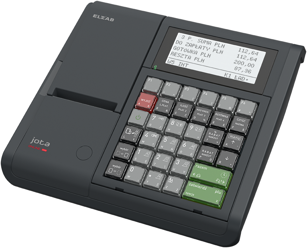 Bogata funkcjonalność ELZAB Joty ONLINE BT/ WiFi pozwala zarządzać pracą kasjerów oraz prowadzić wygodną sprzedaż. Prace na kasie usprawniają rozbudowane możliwości promocji i rabatów, współpraca z wagami i wago-skanerami, terminalem kart płatniczych, szufladą, skanerem kodów kreskowych oraz wiele sposobów komunikacji z komputerem.
